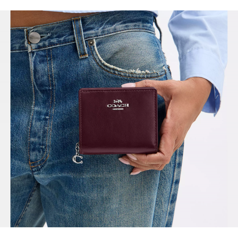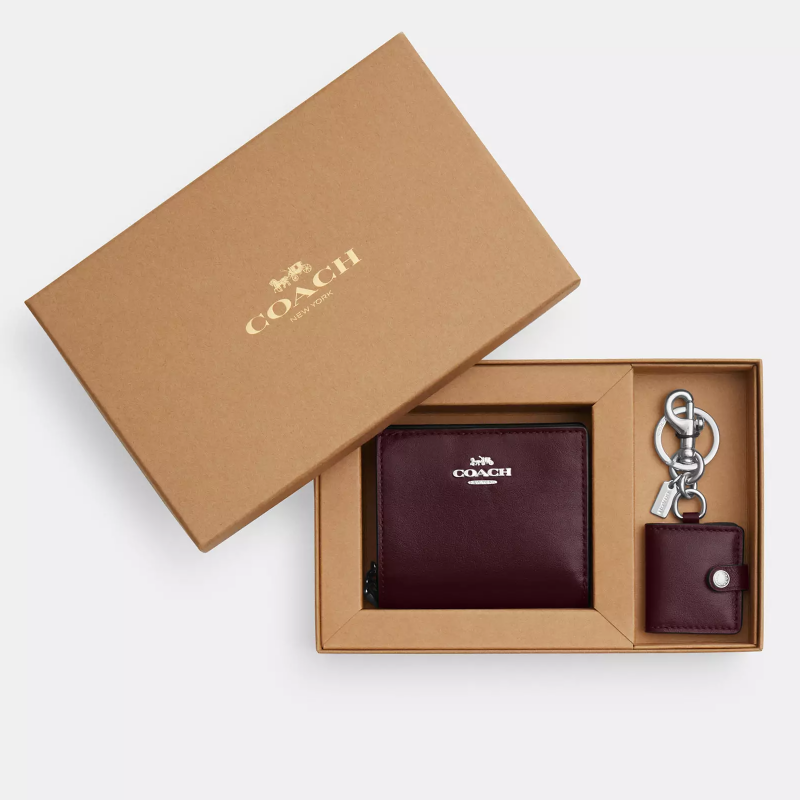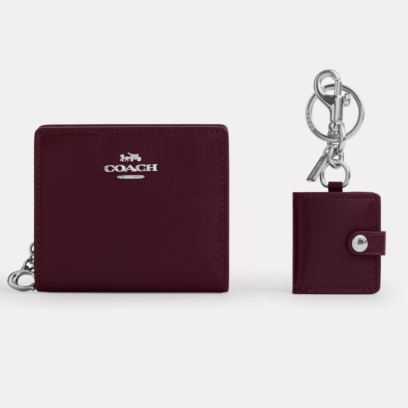 Coach コーチ 箱入りスナップ財布と額縁バッグチャーム スムースレザー/シルバーダークボルド