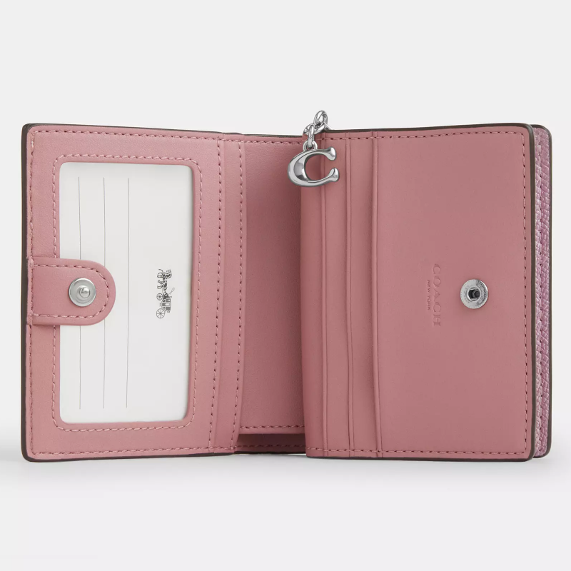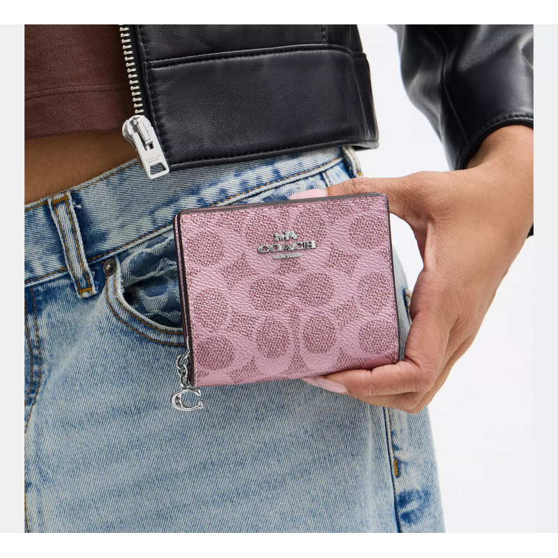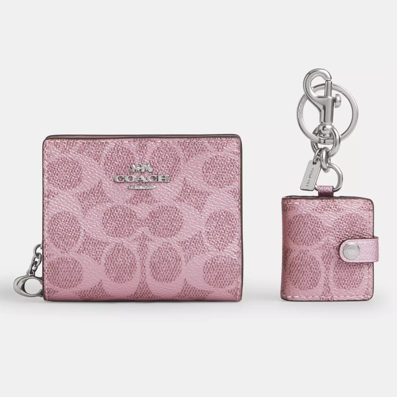 Coach コーチ 箱入りスナップ財布と額縁バッグチャーム シグネチャーキャンバスシルバーピンク