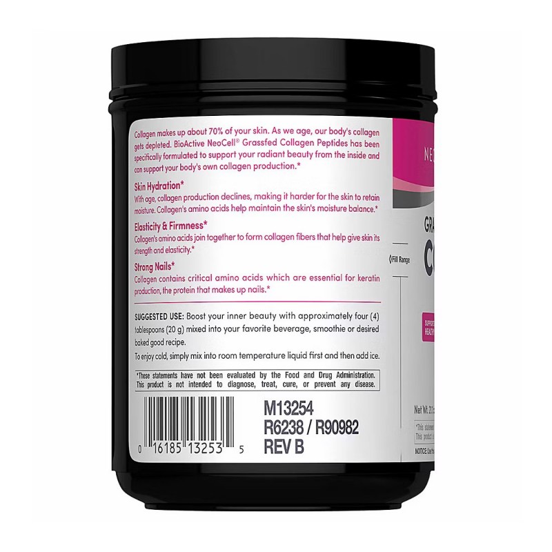 NeoCellコラーゲンパウダーを摂取すると、さまざまな健康上の利点が得られる可能性があります. コラーゲンは、健康な肌、髪、爪、関節をサポートし、体内でのコラーゲンの生成を促進しますが、実際には加齢とともに減少します. 加水分解コラーゲンのサプリメントを摂取すると、体がコラーゲン(およびケラチンなどの他のタンパク質)を作るのに必要なビルディングブロックの一部を提供するのに役立ちます. そして、体が必要とするコラーゲンを作ることができれば、美しく若々しい肌、健康な髪、爪、関節を促進します.*