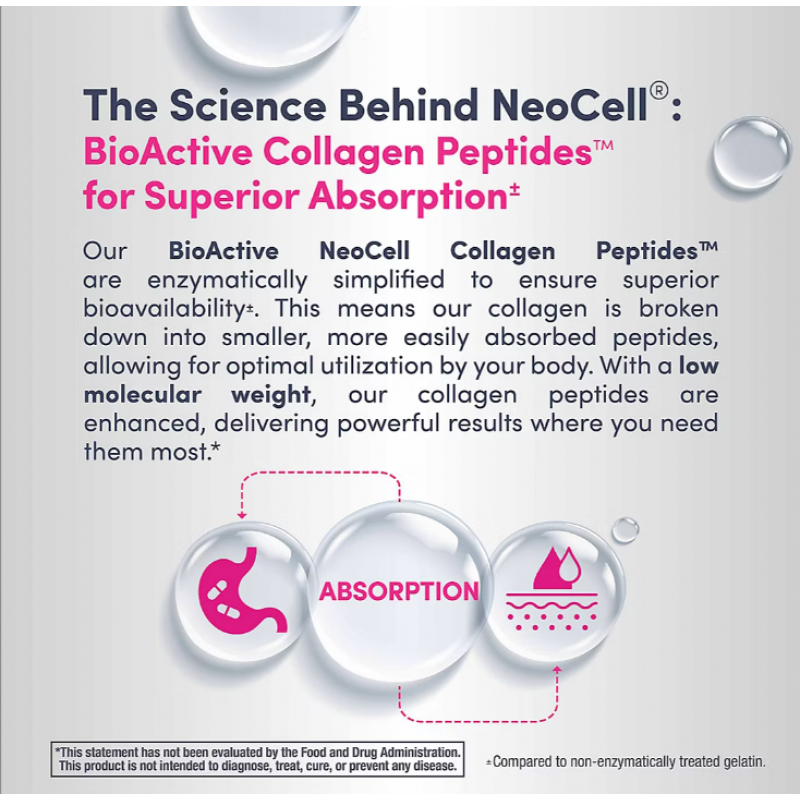 NeoCellコラーゲンパウダーを摂取すると、さまざまな健康上の利点が得られる可能性があります. コラーゲンは、健康な肌、髪、爪、関節をサポートし、体内でのコラーゲンの生成を促進しますが、実際には加齢とともに減少します. 加水分解コラーゲンのサプリメントを摂取すると、体がコラーゲン(およびケラチンなどの他のタンパク質)を作るのに必要なビルディングブロックの一部を提供するのに役立ちます. そして、体が必要とするコラーゲンを作ることができれば、美しく若々しい肌、健康な髪、爪、関節を促進します.*