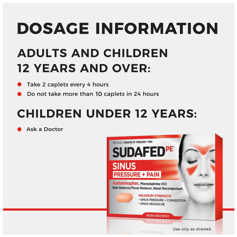 Tags: 112001003W, Sudafed Pe, sinus, Pressure, Pain, Maximum, strength, Acetaminophen, Phenylephrine, HCL, 24 tablets, headache, nasal congestion, sinus pressure, chest, congestion, mucus, multi-symptom, relief, sore, throat, runny, nose, fever, headache